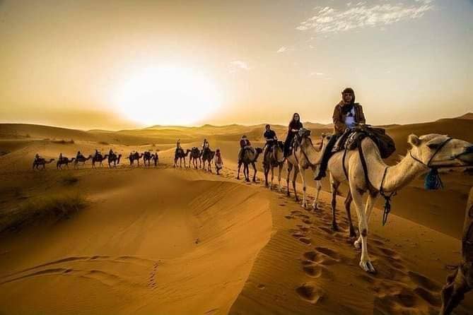 - Camel Trekking: Ride camels across the golden dunes of the Sahara.